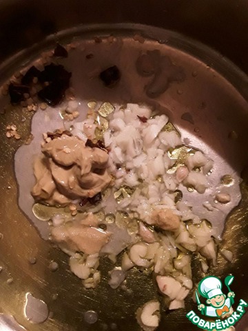 Соединяем оливковое масло, чеснок, соль, горчицу и перец,