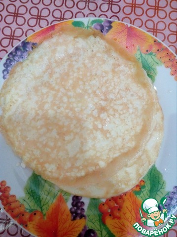 2. Взбиваем вилкой яйца с молоком. Подсаливаем. Жарим тонкие яичные блинчики.