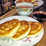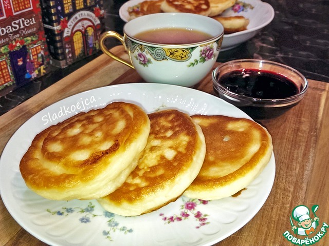Подавать можно со сметаной, медом, вареньем, молоком, чаем.