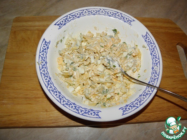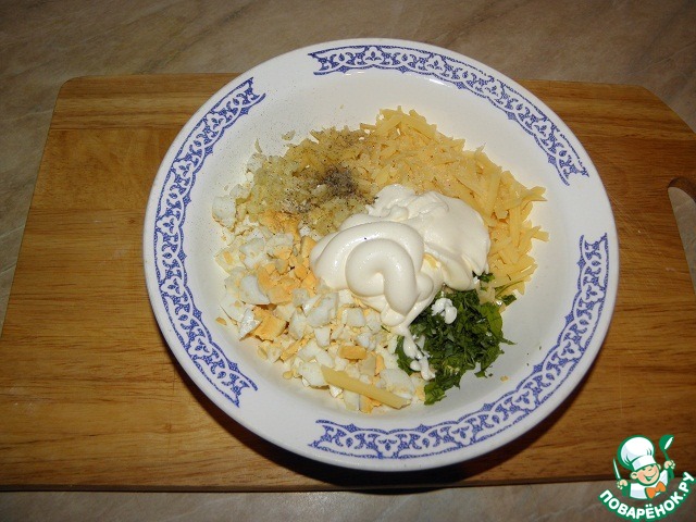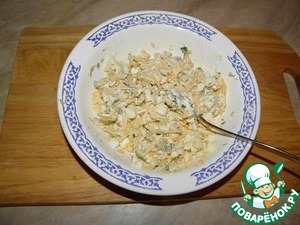 Посолить, поперчить (с солью осторожно) добавить майонез