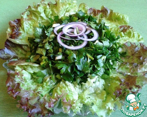 Рецепт «Салат из зелени с чесноком»: