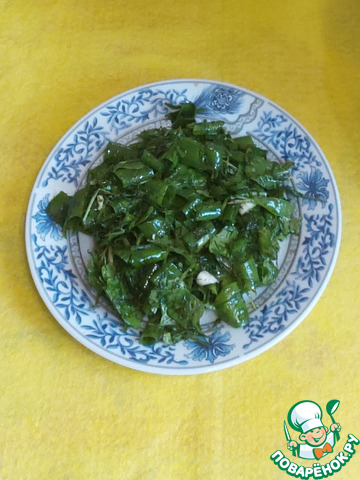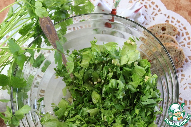 Салат из зелени с чесноком