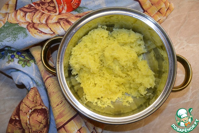 Картофель отварить, измельчить толкушкой в пюре. Водичкой не разводить.