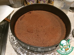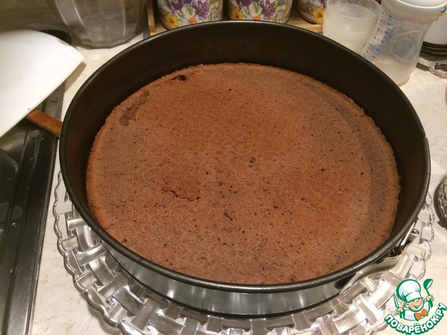 Когда кекс остыл (у меня ушло примерно 15 минут на балконе) я его перекладываю на блюдо, закрепляю разъемные борта плотненько и начинаю выкладывать слои.