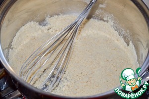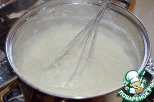 Постепенно, понемногу, добавляем горячее молоко, каждый раз вымешивая до однородной консистенции.