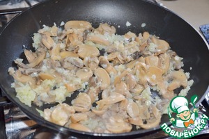 Добавляем грибы, перемешиваем, слегка обжариваем.