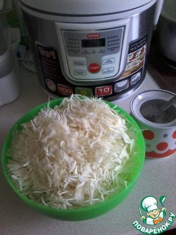 По окончанию режима «Тушение», влить содержимое миски в мультиварку. Перемешать. Примять.
