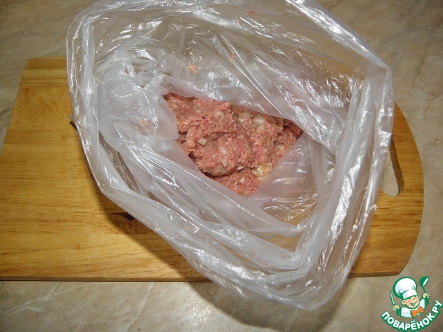 Завязать пакет и в течение 5 минут отбивать- поднимать и бросать на доску (или в миске) со всех сторон.