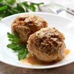 ... Котлеты с подливой съели, а гарнир не захотели. Вот думаю, может в следующий раз гарнир в фарш замешать?))