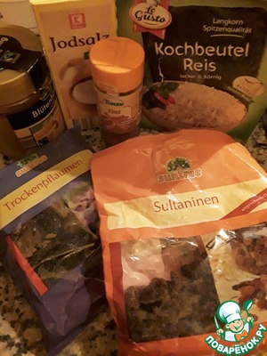 Ингредиенты для «Рис с мёдом и сухофруктами»: