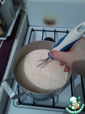 Налить в кастрюльку молоко топленое и обычное пастеризованное 3,2-4%. Нагреть до 40 градусов. Если термометра нет, то капнуть молоко на запястье, если кожа терпит, то это самая нужная температура.