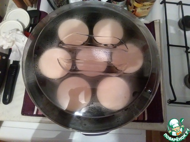 Разлить молочную смесь по стаканчикам из йортницы. У меня они объемом 200 мл.