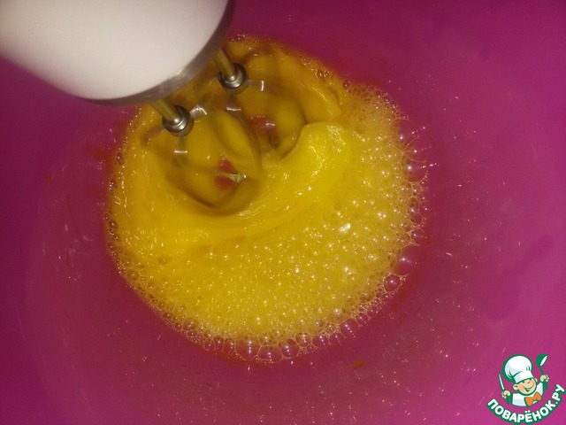 Яйца смешать с сахаром, солью.