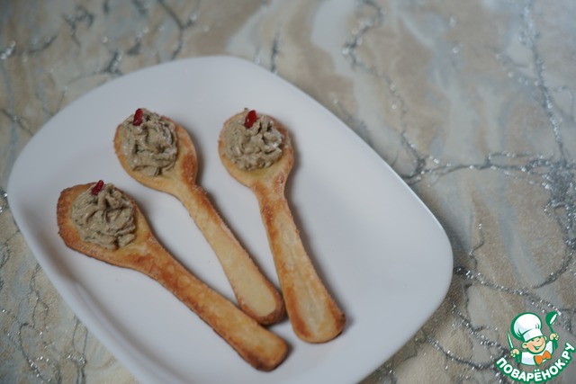 Закуска должна быть вкусной. Скажите,пожалуйста, ложечки выкладывать тестом вверх или для лучшей формы, чтобы ложечка немного придавлива тесто.
