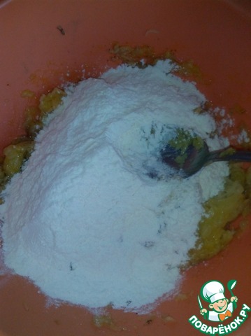Добавить муку. Все хорошо перемешать.