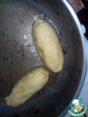 "Биточки" обжаривать в чесночном масле до золотистого цвета с двух сторон.