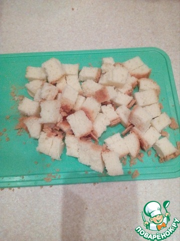 Нарезаем бисквит квадратиками.