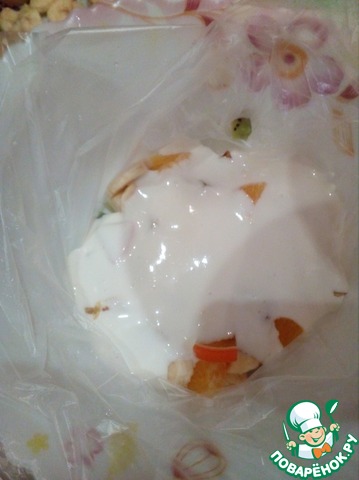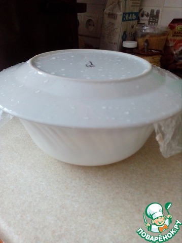 Застилаем емкость полиэтиленовым пакетом, чтобы потом легко извлечь торт. -