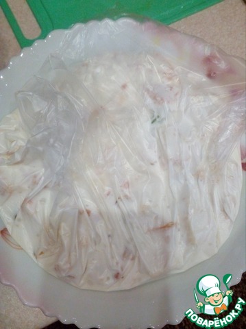 Теперь мы накрываем наш торт пакетиком и ставим в холодильник до полного застывания.