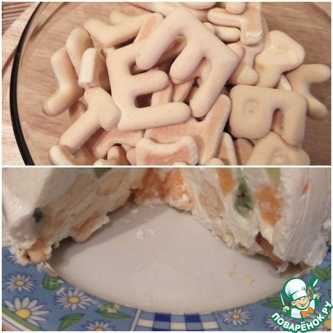 [+4]Использовал вместо бисквита печенье буквы. Печенье нормально размягчилось и разбухло, но осталось чуть твёрдым, ощутимым что ли ... По рецепту всё то же самое. Добавлял полпакетика ванильного сахара. Заметка тем кто кто не любит сладкое - я использовал 2/3 стакана сахара для заливки, было сладковато, в следующий раз буду использовать полстакана. Автору мерси за рецепт.
