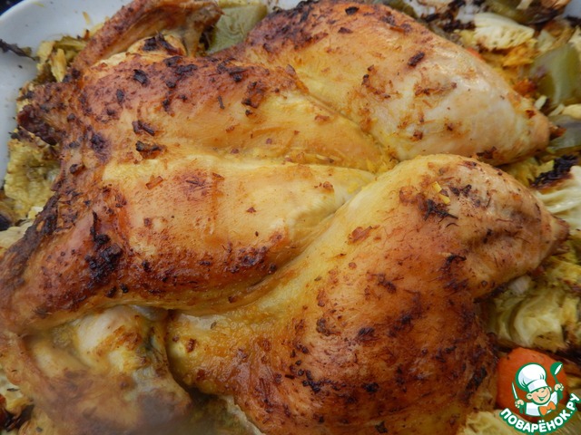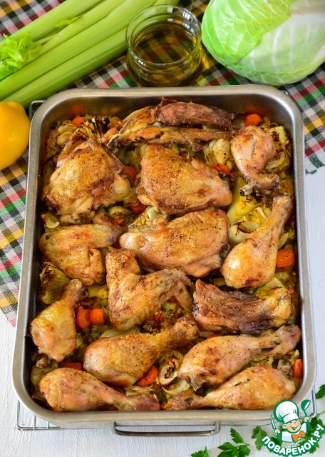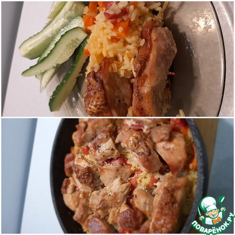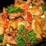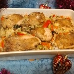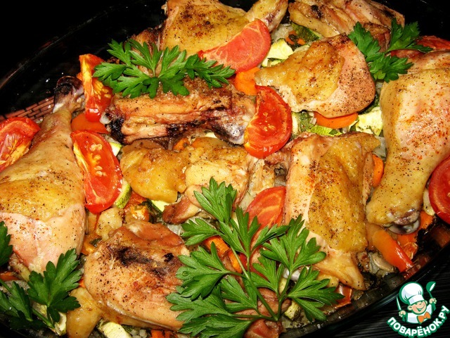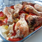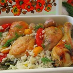 Курица, запеченная с овощами и рисом