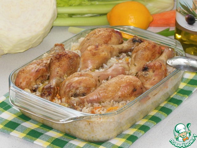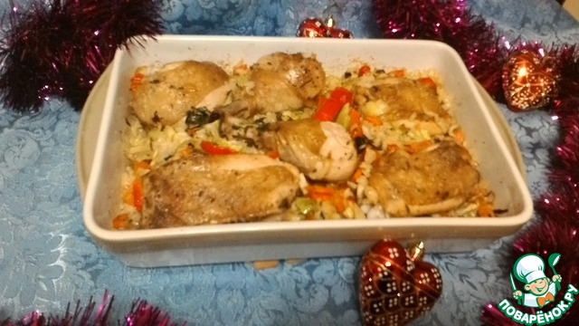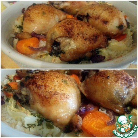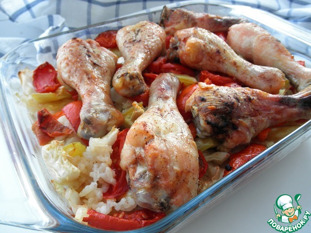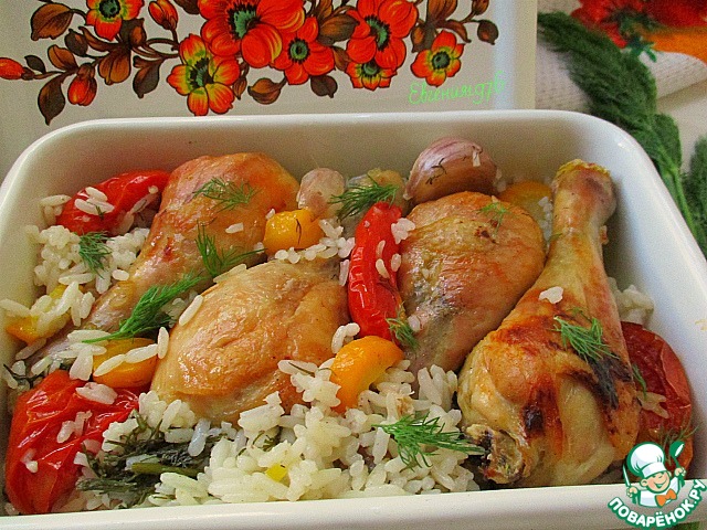 Рецепт «Курица, запеченная с овощами и рисом»: