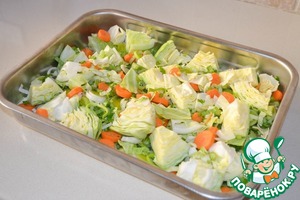 Сверху на рис выкладываем овощи. Солим.