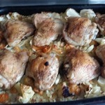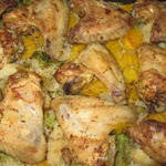 Получившейся смесью поливаем сверху курицу с овощами.