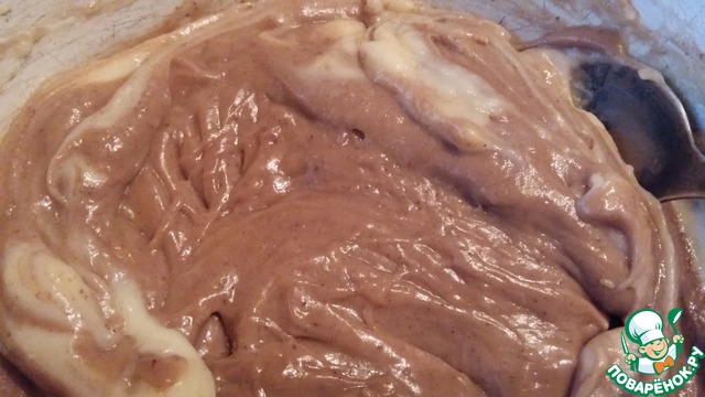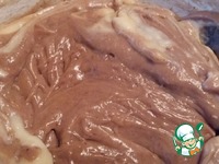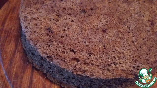 Коричневый бисквит приготовить по тому же принципу, только вместе с мукой добавить какао. Я на всякий случай добавила еще 1/2 ч. л. разрыхлителя. |