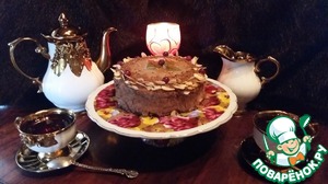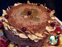 Верх и бока торта обмазать шоколадным кремом и украсить по собственному усмотрению. |