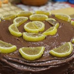 Мармелад, желательно лимонный с кислинкой, нарезать тонкими ломтиками и расположить поверх крема. |