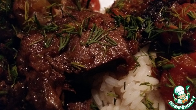 Мясо получилось очень мягким и вкусным. Подавать его лучше всего с картофельным пюре, или с рисом.