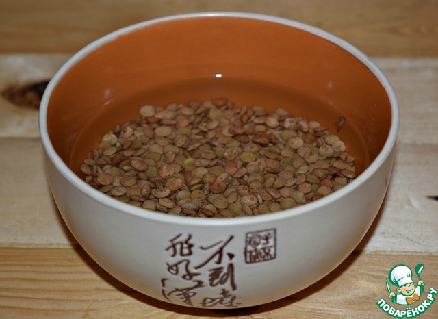 Чечевицу (готовила из коричневой) промыть и замочить на пару часов в холодной воде (я замачивала на ночь)