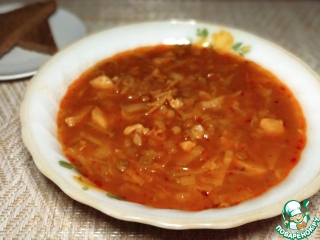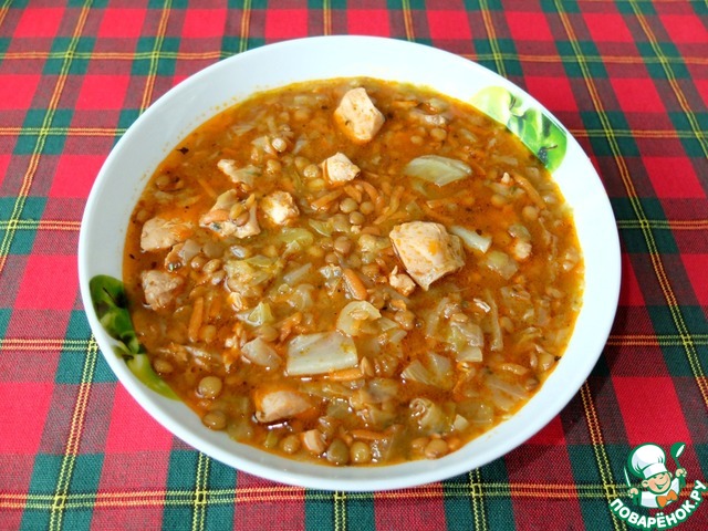 Рецепт «Капустняк с курицей и чечевицей»: