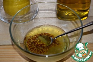 Для заправки смешать оливковое масло, горчицу и лимонный сок в отдельной чашке, перемешать.