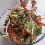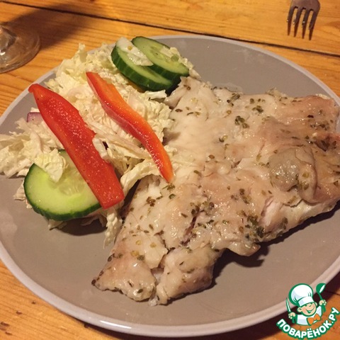 Салат прекрасно подошел к запеченной белой рыбе.