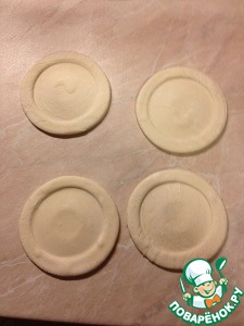 • Из теста выемкой вырезать кружочки. В центре каждого кружочка сделать углубление.