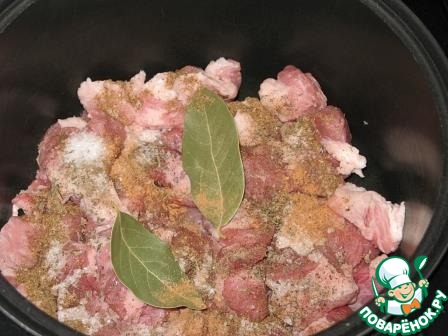 Во время приготовления можно пару раз перемешать, мясо будет готовиться в собственном соку и жиру. -