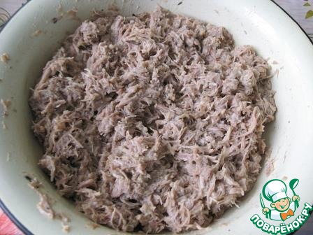 Размять мясо при помощи вилки или лопатки до желаемого состояния (крупнее или мельче).