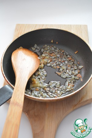 В 3 ст. л. масла поджарьте репчатый лук до золотистого цвета и полностью остудите. -