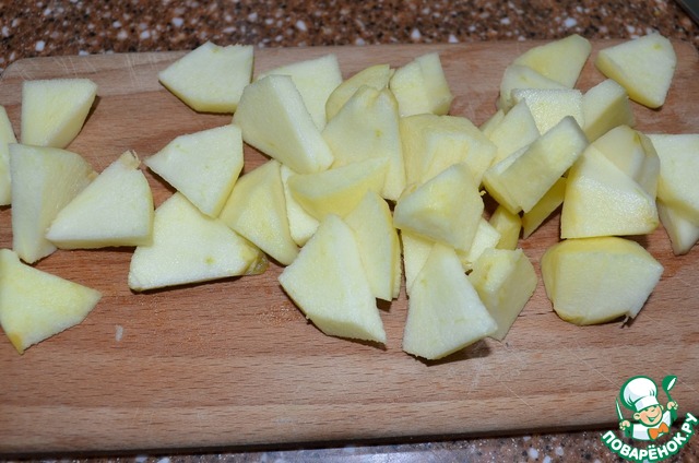 Яблоко вымыть, почистить, нарезать на кусочки, удалив сердцевину.