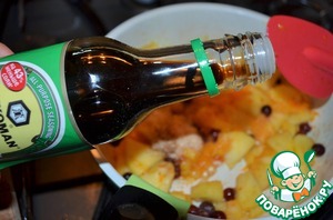 Влить соевый соус, я использую легкий натурально сваренный соевый соус от ТМ Киккоман. -