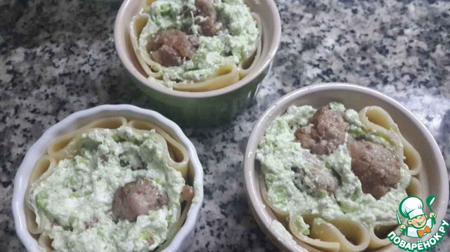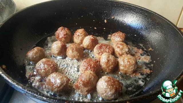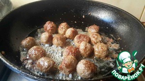"Утопить" в начинке обжаренные мясные шарики, сколько влезет, но без фанатизма.