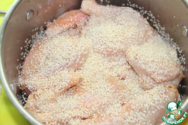 Пересыпать кунжутом, предварительно подсушенным на сухой сковороде.