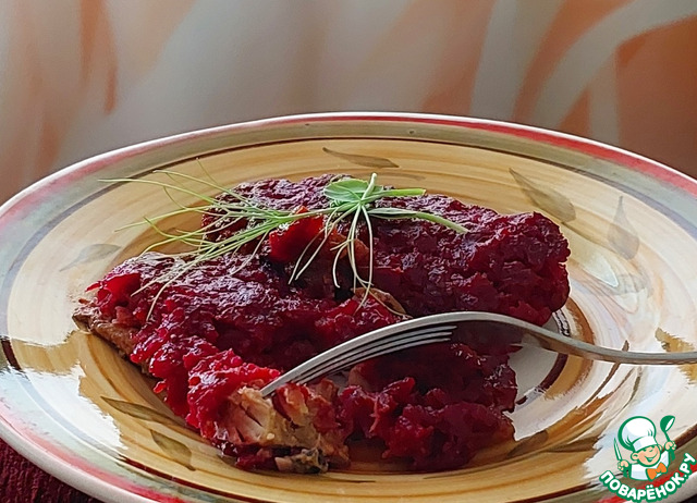 Рецепт «Сельдь, запеченная под свекольной шубой»: