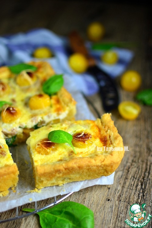 Очень вкусный киш с уткой, шпинатом и помидорами черри! Готовить не сложно, продукты вполне популярные и ходовые! Можно подать как в горячем виде на ужин и второе, и в охлажденном виде - на закуску!