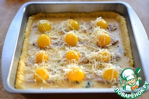 Яйца размещать со сливками, подсолить, залить пирог;