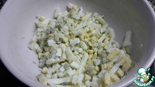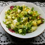 а дома мы уже экспериментировали с принесенным. Этот салат плод этих экспериментов.