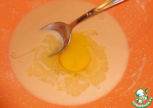 Добавляем в тесто растопленное в соке сливочное масло (смесь должна быть не горячей - 40*)