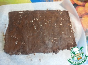 У меня была синяя кокосовая стружка, поэтому начинка голубая..) Выкладываем основу на пищевую плёнку или на бумагу для запекания. Разравниваем. -